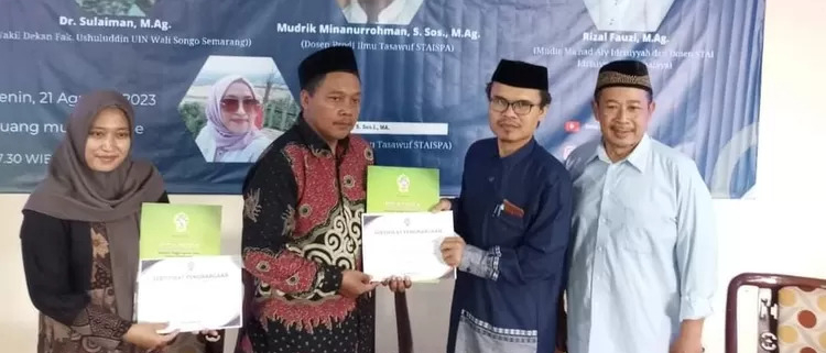 Acara dilanjutkan dengan penyampaian materi oleh para narasumber, mulai Dr. Sulaiman, M.Ag, Rizal Fauzi, M.Ag dan Mudrik Minanurrohman, S. Sos., M.Ag. Adapun yang menjadi moderator adalah Lia Nur Khotijah S. Sos.I., MA., salah satu dosen Prodi Ilmu Tasawuf STAI Sunan Pandanaran.