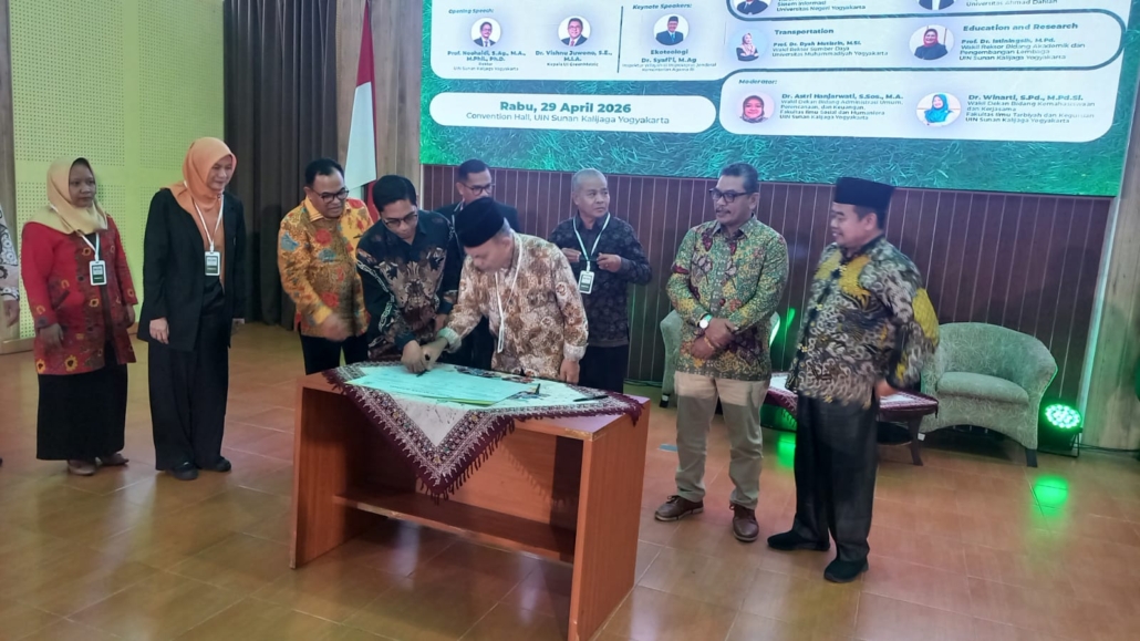 Penandatanganan komitmen tersebut berlangsung pada Rabu (29/04/2026) di kampus UIN Sunan Kalijaga Yogyakarta, dan diikuti oleh para pimpinan PTKI dari berbagai daerah di Indonesia. Kegiatan ini menjadi momentum penting dalam memperkuat sinergi antarperguruan tinggi keagamaan Islam untuk mewujudkan lingkungan kampus yang ramah, hijau, dan berorientasi prinsip-prinsip Ekoteologi.