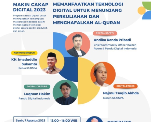 Kamis, 10 Agustus 2023, selang 2 hari Sekolah Tinggi Agama Islam Sunan Pandanaran (STAISPA) bekerja sama kembali dengan Kementrian Komunikasi dan Informatika (Kominfo) yang menggelar seminar online yang berjudul “Literasi…